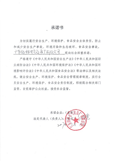 关于履行安全生产、环境保护、食品安全主体责任的承诺书