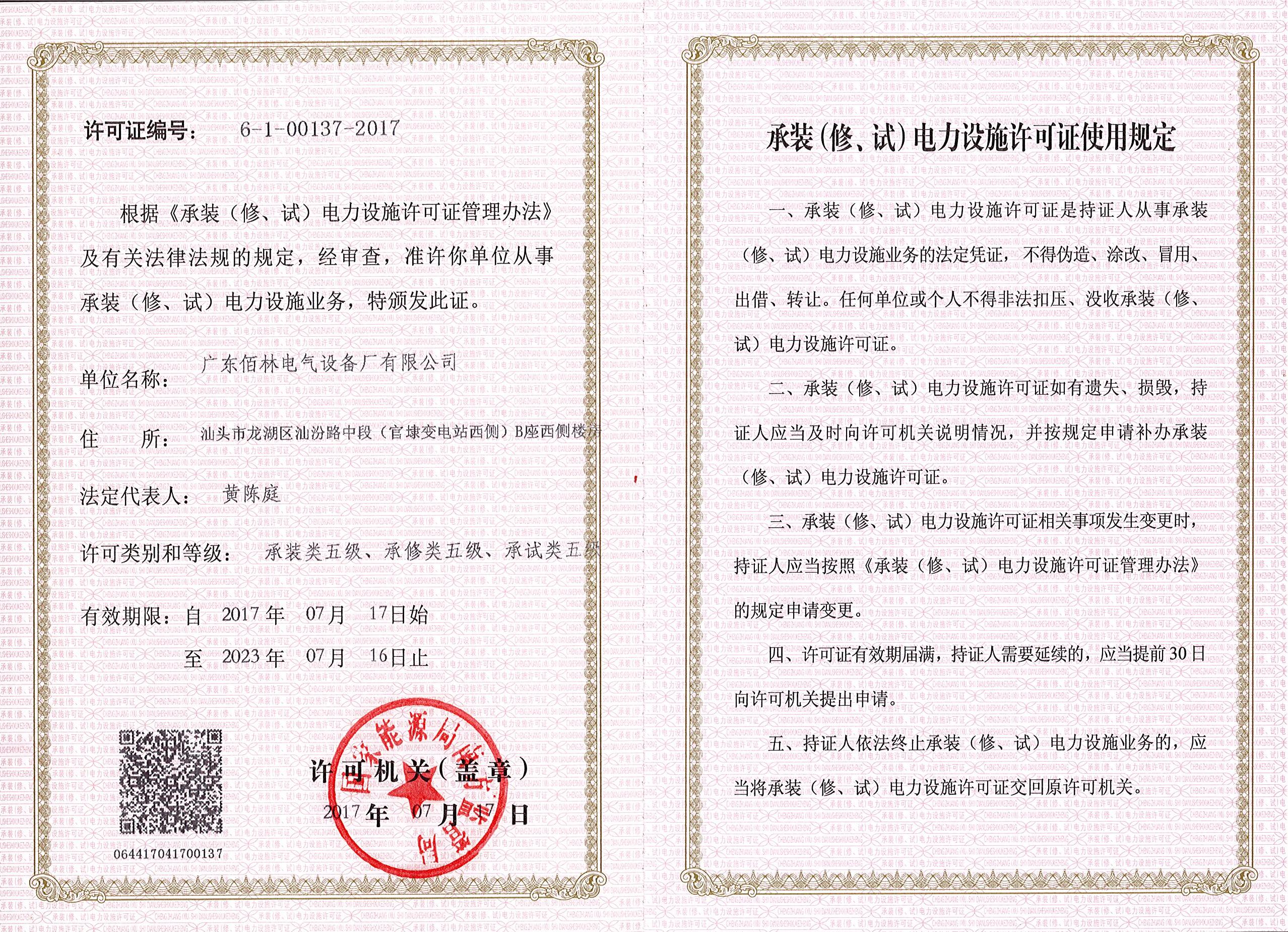 喜讯:公司荣获承装(修、试)电力设施许可证