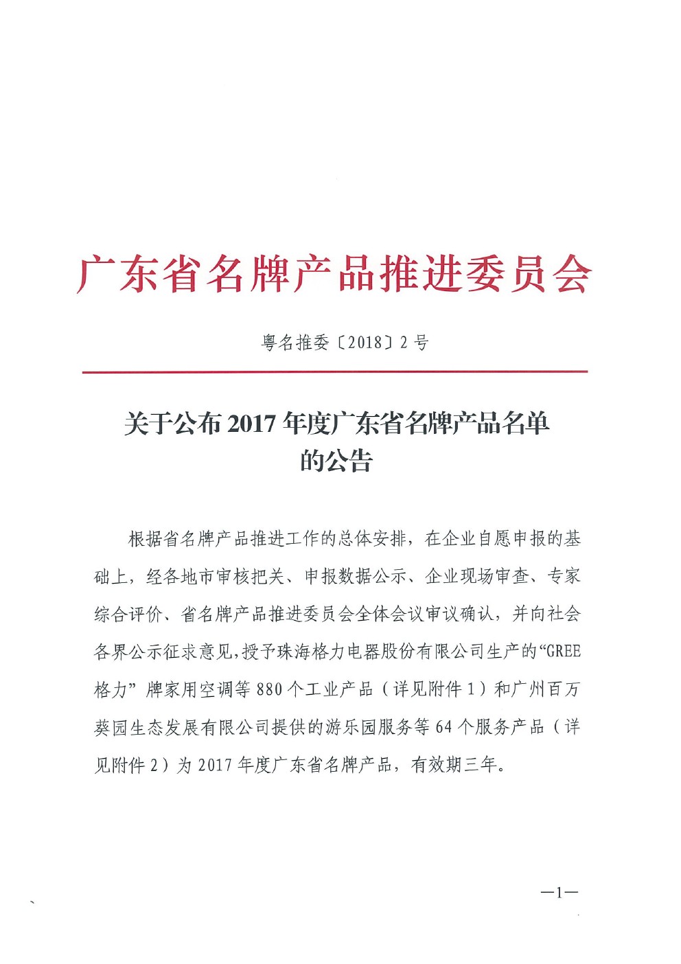 企业产品荣获2017年广东省名牌产品